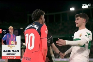 体育资讯2月1日讯 西甲第22轮,巴萨3-1战胜埃尔切。亚马尔首发出战,赛后获评全场最佳球员。