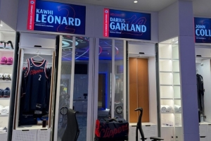 快船队记Joey Linn晒出了更衣室的位置,加兰直接用哈登的旧更衣柜,并且和伦纳德挨着。