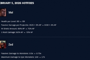 体育资讯2月6日讯 梅尔和打野劫将会在下次热补丁时进行加强