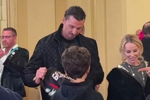 伊布在米兰冬奥会开幕式当天与高布伦见面,向这位知名演员赠送了一件定制的米兰球衣,这件球衣背面印有高布伦的名字和26号,这份礼物让高布伦惊喜不已,他对伊布表示感谢。