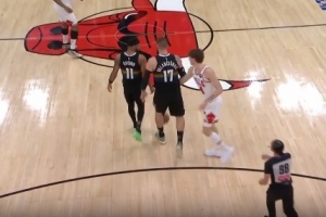 GIF-有点小情绪!瓦兰被吹进攻犯规抱着球 布泽利斯多次拿球都不肯给