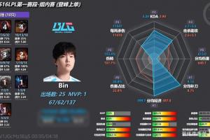 体育资讯2月10日讯 粉丝制作第一赛段组内赛上单雷达图,Bin吃最多的经济打最少的伤害!