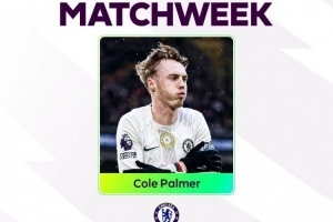 英超第25轮比赛,帕尔默打进3球,帮助切尔西客场3-1击败狼队,他当选本轮英超最佳球员。