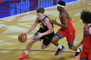 体育资讯2月14日讯 今日全明星新秀赛中卡特队41-36战胜麦迪队,比赛中解说员杨健谈到了卡特队的埃奇库姆和麦迪队的克尼佩尔。