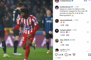 卢克曼也在赛后通过社媒晒出自己的庆祝照并配文:“很高兴能代表这家俱乐部在欧冠联赛中首次亮相。回到大都会球场,我们将全力以赴争取胜利。”