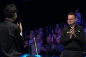 比赛进行到最后一颗黑球时,墨菲早早站起准备为常冰玉鼓掌,握手后与全场观众一样,长时间为常冰玉的精彩表现鼓掌!