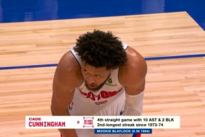 穆奇·布雷洛克在1994年曾连续5场贡献至少10助2帽