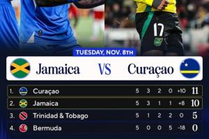 5轮过后,库拉索11分小组第一,领先小组第二牙买加1分,下轮两队将直接交手,库拉索不败即直通世界杯,比赛于北京时间11月19日9点在牙买加主场进行。两队首回合交手,库拉索主场2-0击败牙买加。