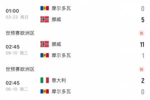 此外,在双方首回合交手中,挪威主场3-0完胜意大利,净胜球方面又拉开6球差距。