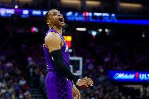 据统计,威少是NBA历史上单场砍下至少20分10篮板10助攻且0失误年龄最大的球员(37岁116天)。