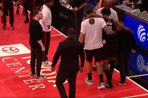 GIF-伊森受伤 亚当斯将其搀扶离场