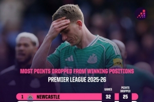 下一篇: 本赛季英超领先情况下丢分榜:纽卡25分最多 切尔西19分 曼联16分