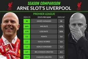 上一篇: 斯洛特两赛季英超表现:胜率-19%、负率+20%,场均进球2.3→1.6