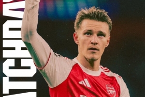 阿森纳官方社媒发布为此役制作的海报,厄德高单人出镜。