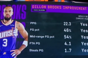 场均22.3分1.7断4.1次罚球出手,投篮命中率46%,中距离命中率54%