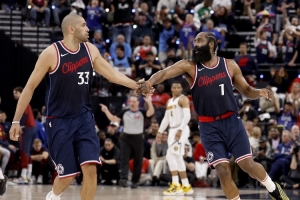 快船首发:哈登、邓恩、小德里克-琼斯、巴图姆、祖巴茨。