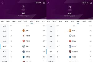 与此同时,曼联的进球数和丢球数分别排名英超第3和第11位。