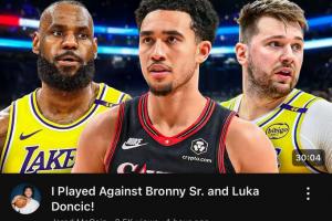 他的标题很有趣:“我跟老布朗尼(指勒布朗·詹姆斯)和卢卡·东契奇打了比赛!”