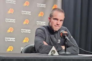 体育资讯11月5日讯 NBA常规赛,太阳107-118不敌勇士。赛后,太阳主教练乔丹·奥特接受了采访。