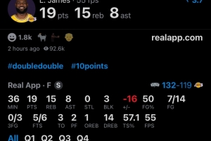 据统计,詹姆斯本场比赛篮板、助攻(与东契奇并列)和盖帽均为全队最高。