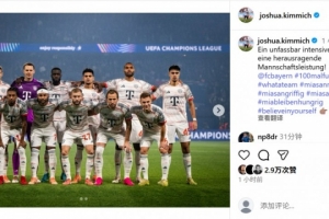 本场比赛也是基米希生涯第100次在欧冠出场,他在个人社媒晒出全队合照,配文写道:“在这一场紧张激烈的比赛中,球队表现完美,达成欧冠百场里程碑!”