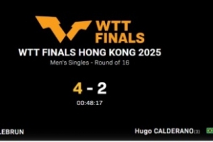 体育资讯12月11日讯 WTT中国香港总决赛男单,费利克斯·勒布伦4-2战胜雨果·卡尔德拉诺,晋级8强。