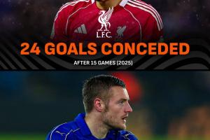 利物浦在前15轮过后,成为自莱斯特城以来,英超卫冕冠军中积分和失球数据最差的一支😬📉