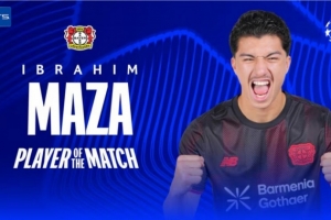 此役马扎踢满全场,帮助勒沃库森取胜,他当选欧冠官方本场比赛最佳球员。