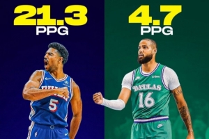 格莱姆斯在76人目前是场均21.3分,而马丁在独行侠则是18场共得85分,场均4.7分。