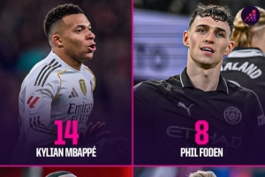 体育资讯12月15日讯 Opta统计了2023-2024赛季以来球员在五大联赛的禁区外进球数量,姆巴佩14球最多。