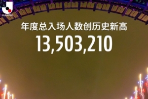 体育资讯12月16日讯 根据J联赛官方统计,今年J联赛年度观众总数达到了13503210人次,创历史新高。
