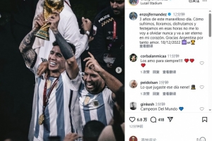体育资讯12月19日讯 恩佐在Instagram发文,纪念阿根廷世界杯夺冠三周年。