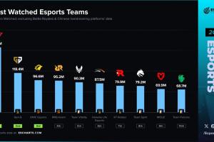 体育资讯12月23日讯 近日外媒统计2025年度战队收视率排名(不包含大陆地区数据),具体如下: