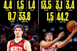 随着上场时间的增加,他的自信心也在增强,现在他在火箭队的表现已经翻倍。