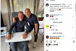 伊涅斯塔社媒晒出与温苏埃的合照,配文:“畅谈生活与足球的时光总是如此美妙,你真的很了不起,朋友。”