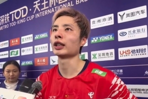 体育资讯12月26日讯 天王杯国际羽毛球公开赛首日八进四比赛,石宇奇2-0桃田贤斗,晋级四强。石宇奇接受采访。