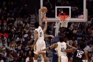 GIF-布克上篮被米西钉板后裁判吹罚防守犯规,鹈鹕没有挑战了