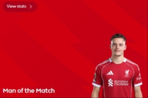 体育资讯12月28日讯 2025-26赛季英超联赛第18轮,利物浦2-1战胜狼队,本场首发出战的维尔茨赛后当选全场最佳。