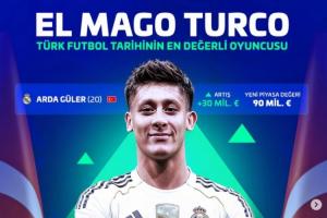 而居莱尔也是第一个达到9000万欧元身价的土耳其球员,本赛季这位20岁的皇马中场出战25次,贡献3球7助。