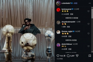 体育资讯1月1日讯 巴黎前锋登贝莱社媒晒图,回顾2025。