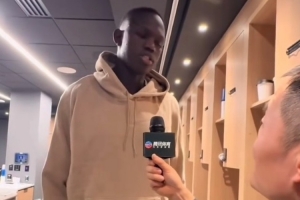 体育资讯1月3日讯 今日马卢阿奇在更衣室接受了记者鲍仁君的采访,期间谈到了好友杨瀚森。