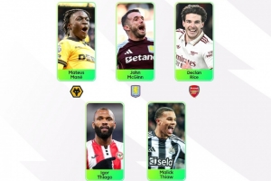体育资讯1月5日讯 英超第20轮联赛已经完赛,英超官方也评出了本轮最佳球员候选5人名单:
