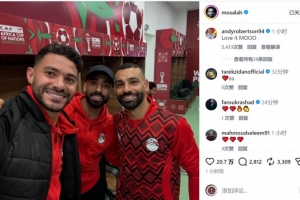 萨拉赫赛后社媒晒出与队内另外两位进球者易卜拉欣、阿提亚的合照,庆祝球队晋级非洲杯8强。