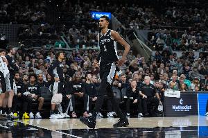 此役,文班亚马背靠背出战25分57秒,投篮15中7,三分3中0,罚球4中2,得到16分14篮板1助攻2抢断4盖帽。