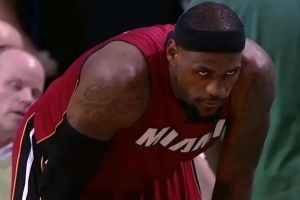 2012年东部决赛G6,热火2-3落后,詹姆斯26中19,三分4中2,罚球9中5,得到45分15篮板5助攻。