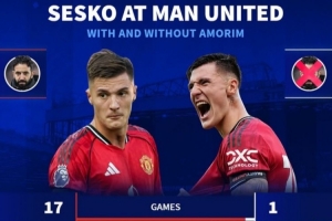 数据统计显示,舍什科在阿莫林时代共计出战17场、1048分钟共计打进2球,场均0.12球、每524分钟1球;