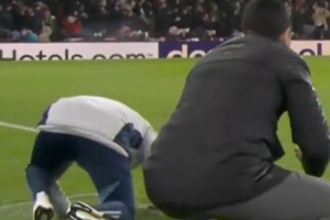 英超联赛官方晒出了场边阿尔特塔和阿森纳定位球教练的动态,在看到加布里埃尔错失机会后,定位球教练抱头跪下,阿尔特塔则蹲下懊恼。