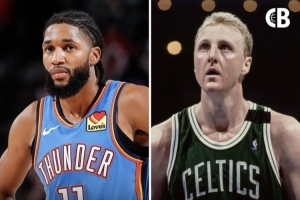 雷霆球员以赛亚·乔目前生涯出场350场,三分球1618投651中,三分命中率为40.2%。而绿军名宿拉里·伯德生涯出场897场,三分球1727投649中,三分命中率为37.6%。