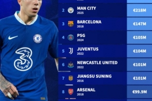 俱乐部单个冬窗引援花费排行:切尔西23年3.3亿欧居首,苏宁上榜