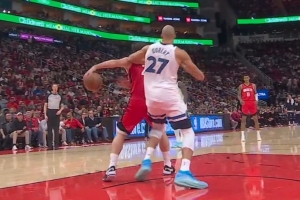 GIF-申京背传戏耍戈贝尔 球出手还在做动作晃人